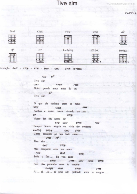 Super Partituras - Tive Sim (Cartola), Com Cifra